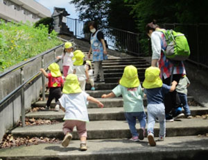 豊かな自然がたくさんある日野市。めばえ保育園では晴れた日にはお散歩に出かけます。