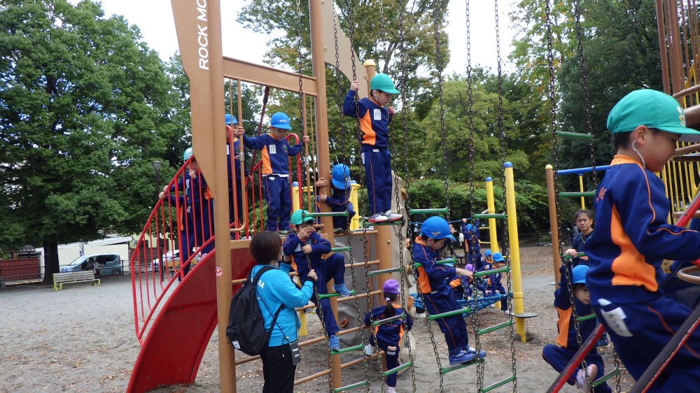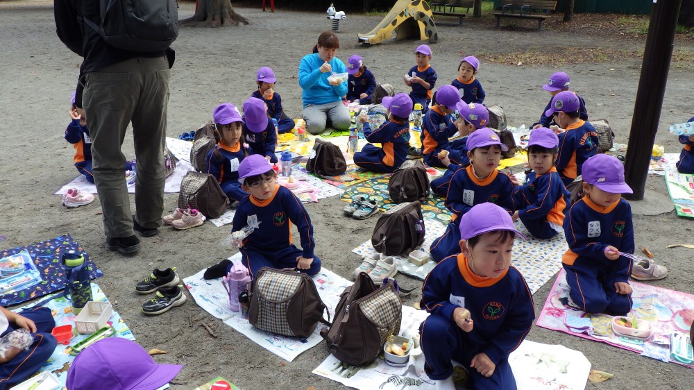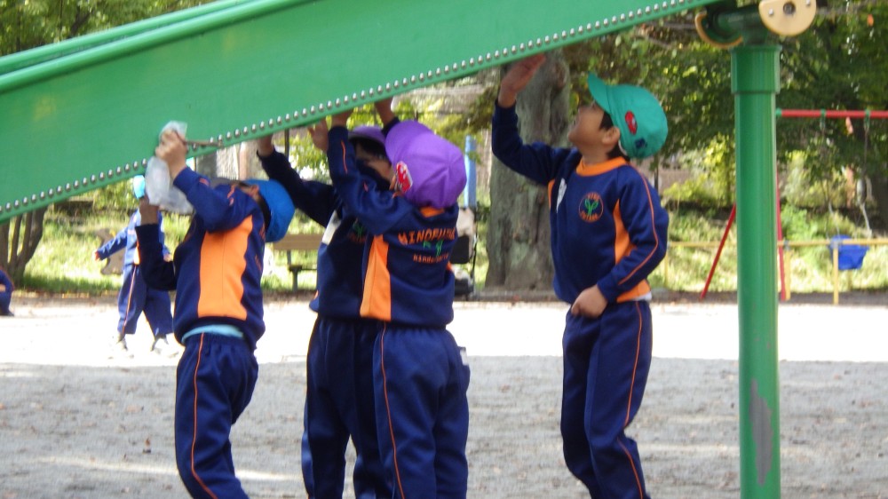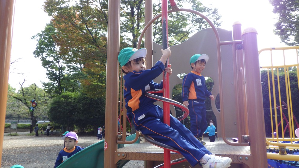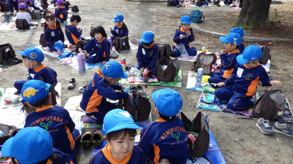 2年生 秋の遠足 富士森公園 どんぐりは特別なエリアを教えてもらい、た~くさん拾ったね。友だちとたくさん身体を使って遊具で遊んだり、お弁当も美味しかったね。